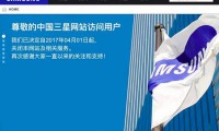 中國三星網(wǎng)站在首頁頭圖位置寫到“尊敬的中國三星網(wǎng)站訪問用戶,我們已決定自2017年04月01日起,關(guān)閉本網(wǎng)站及相關(guān)服務(wù)。再次感謝大家一直以來的關(guān)注和支持!”