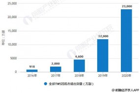 自2016年底蘋果推出第一代AirPods以來,市場熱度不斷增加,出貨量持續(xù)超預(yù)期。市調(diào)機(jī)構(gòu)Counterpoint Research統(tǒng)計(jì)數(shù)據(jù),2016年全球TWS耳機(jī)出貨量僅為918萬副,2018年達(dá)到4600萬副,年均復(fù)合增長率為124%。