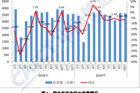 2019年1-10月,國(guó)內(nèi)手機(jī)市場(chǎng)總體出貨量3.23億部,同比下降5.8%,其中2G手機(jī)1320.1萬(wàn)部、3G手機(jī)5.8萬(wàn)部、4G手機(jī)3.07億部,5G手機(jī)328.1萬(wàn)部。