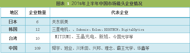 第二節(jié)2015年上半年中國市場鏡頭企業(yè)分布情況