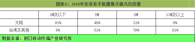 圖表2:2015年安卓系手機攝像頭鏡頭出貨量