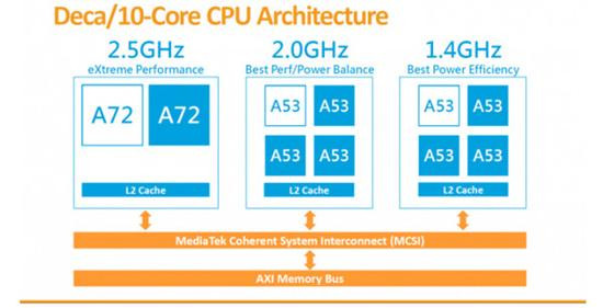 所以聯(lián)發(fā)科要想真正踏入高端領(lǐng)域,關(guān)鍵就在今年X20和X30了。X20采用了Tri-Cluster架構(gòu),特點(diǎn)就是由2顆A72、4顆A53和4顆低功耗A53共三部分組成CPU,總共十核讓拼核進(jìn)入新境界;GPU部分則采用了最新的Mali-T880MP4,算是跟上了主流水平。X30則更是強(qiáng)大,將同樣十個核心的處理器分為了四組,采用16nmFinFET工藝制造,加強(qiáng)多媒體、I/O支持、GPU性能,勢要與驍龍820爭個高低。