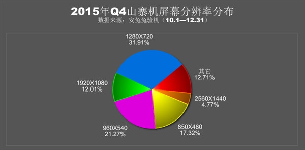 在屏幕分辨率方面,720P的分辨率依然是山寨機廠商的首選,960540、850480這些小分辨率的比例有所上升。1080P的比例下降到了12.01%。在這些比例分布中,筆者將1024X600、800800、1334X750等不常見屏幕分辨率統(tǒng)統(tǒng)歸到了“其它”這個分類,這個比例達到了12.7%。