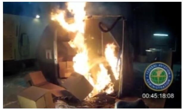 FAA曾經(jīng)模擬一個(gè)航機(jī)貨艙裝滿(mǎn)鋰離子電池,當(dāng)電池短路,釋放出氫氣等氣體,氣體燃燒時(shí)發(fā)生強(qiáng)烈爆炸,艙內(nèi)濃煙密布,機(jī)艙內(nèi)的滅火系統(tǒng)雖然可以撲滅火種,但未能阻止電池繼續(xù)發(fā)熱,令火勢(shì)死灰復(fù)燃,爆炸威力可爆開(kāi)飛機(jī)機(jī)身。