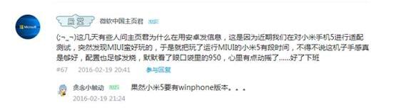 2月24日,小米全新旗艦機型——小米5正式回歸,除了帶著幾項不錯的新技術(shù)外,有著不俗性價比的小米5似乎還是能讓米粉們“欲罷不能”。而對于小米5,有米粉提出了新的疑問就是小米5能不能適配Win10?雖然官方?jīng)]給出任何消息,但大神在民間。近日,B站微軟中國主頁君在其視頻下方的評論中透露這一細(xì)節(jié)。