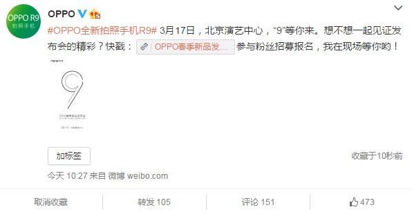 3月4日消息,今天上午OPPO在其官方微博公布了R9發(fā)布會(huì)的時(shí)間,3月17日OPPO將帶來(lái)今年首款手機(jī)新品OPPO R9。據(jù)悉R9將繼續(xù)之前R7的