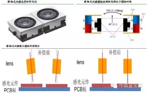 另一方面新的技術(shù)也不斷出現(xiàn)。比如最新的CSM模組封裝技術(shù)通過將芯片直接粘合在Holder上有望顯著提高雙攝像頭生產(chǎn)的良率并降低成本。同時(shí)一種移軸式光學(xué)防抖馬達(dá),通過后標(biāo)定加角度補(bǔ)償,大大提高生產(chǎn)的精度及良品率,降低了功耗并提升響應(yīng)速度,同時(shí)由于磁性部件位于模組四個(gè)角落也使得雙攝像頭的抗磁干擾特性加強(qiáng),解決了雙攝像頭以往存在的光學(xué)防抖問題。