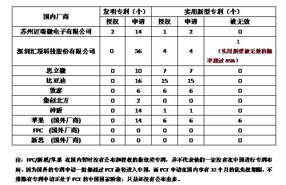 指紋芯片廠商 國內(nèi)專利狀態(tài)綜述——真相讓人吃驚