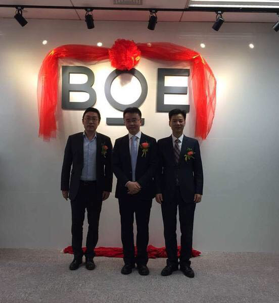京東方副總裁原烽與客戶代表CNC莫康良以及巨鯊宗寅浩共同為上海總部揭幕