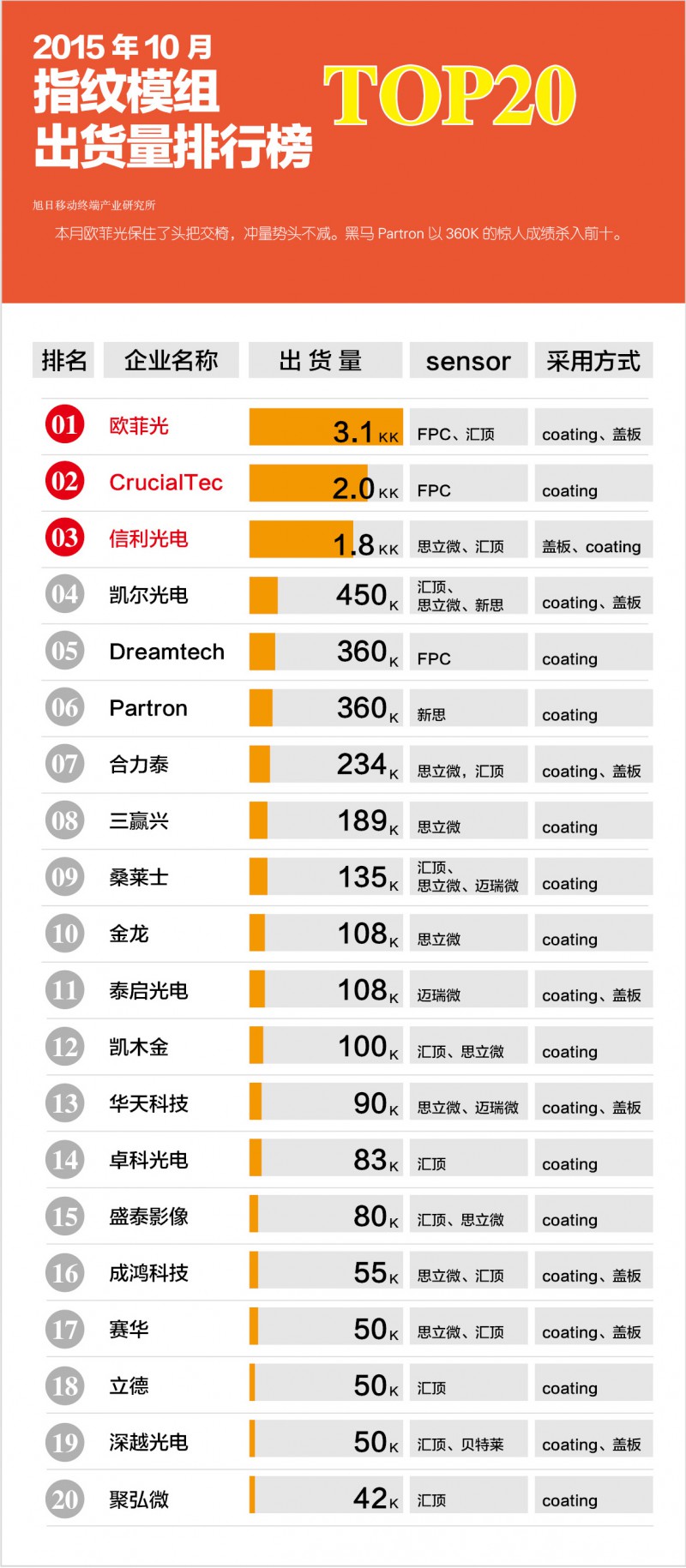 本月歐菲光保住了頭把交椅,沖量勢頭不減。黑馬Partron以360K的驚人成績殺入前十。