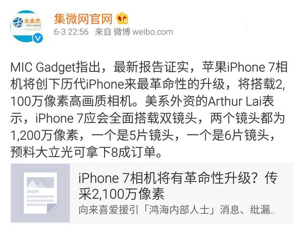 成也蕭何敗也蕭何,由于蘋果新機(jī)銷售疲軟以及競(jìng)爭(zhēng)者分流訂單,大立光營(yíng)收創(chuàng)兩年新低。不過據(jù)ArthurLai消息,iPhone7可能會(huì)全面搭載雙1200萬(wàn)像素鏡頭,并預(yù)測(cè)大立光拿下高達(dá)八成訂單,想想還是有點(diǎn)小激動(dòng)。
