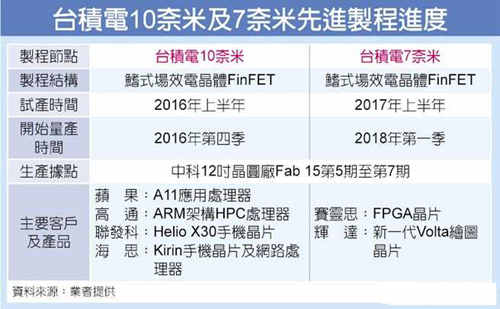 臺(tái)積電10nm年底將量產(chǎn) 客戶鎖定蘋(píng)果高通海思聯(lián)發(fā)科