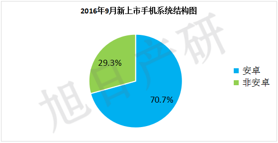 2016年9月國內(nèi)新上市手機安卓系統(tǒng)搭載率在70.7%,環(huán)比下降3.8%,Android操作系統(tǒng)在國內(nèi)手機系統(tǒng)上仍占主導地位。