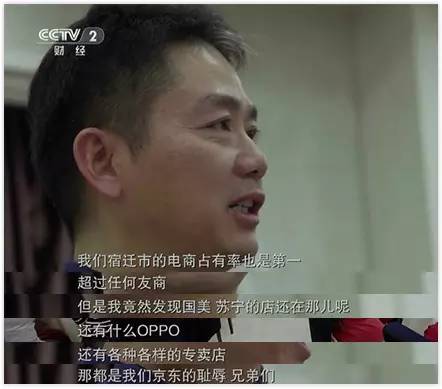 前一陣,劉強東做客央視財經(jīng)頻道的《遇見大咖》節(jié)目時表示,“我們在宿遷市的電商占有率已經(jīng)是第一,超過任何友商,但是我竟然發(fā)現(xiàn)國美、蘇寧的店還在哪兒呢,還有什么OPPO,還有各種各樣的專賣店,那都是我們京東的恥辱,兄弟們!”