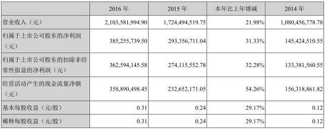 從奮達(dá)科技2016年?duì)I收來(lái)看,2016年其營(yíng)收為21.04億元,同比增長(zhǎng)21.98%,凈利潤(rùn)為3.85億元,同比增長(zhǎng)31.33%;前五大客戶銷售額為10.23億元,占其總營(yíng)收48.68%。