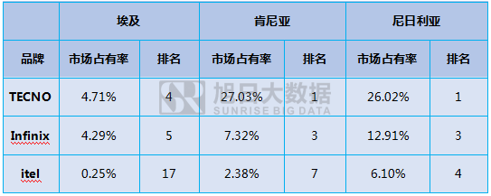 2016年,傳音旗下三大品牌的智能機(jī)在埃及、肯尼亞及尼日利亞市場都取得了不錯(cuò)的成績,其中TECNO智能機(jī)在肯尼亞和尼日利亞市場占有率均排名第一,在埃及市場占有率第排名第四。