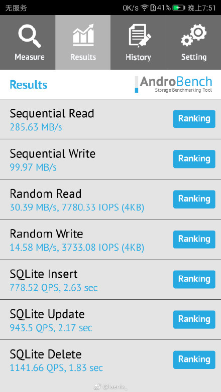 百度貼吧曝光的華為P10用戶對(duì)閃存讀寫(xiě)速度的測(cè)試,出現(xiàn)巨大差異,讀寫(xiě)速率在200-800MB/s之間不等