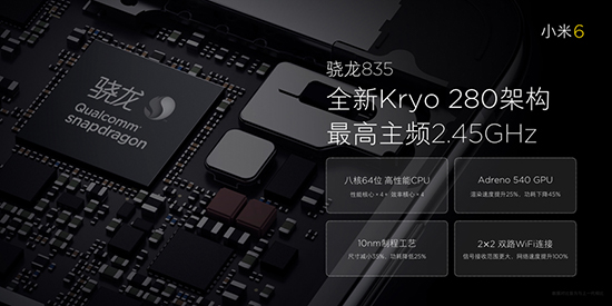 續(xù)航方面,小米6搭載3350mAh電池,加之MIUI系統(tǒng)省電優(yōu)化,讓手機(jī)做到一整天不用充電。高通驍龍835的10nm工藝也帶來(lái)了更好的性能,更低功耗,對(duì)比高通驍龍上代產(chǎn)品,功耗降低了25%。