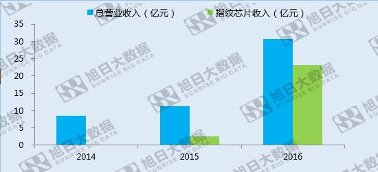 2016年,匯頂科技總營業(yè)收入達到30.77億元,同比增長175%,相比上年增長近20億元,增長皆來自于指紋芯片業(yè)務(wù),而固定電話芯片和觸控芯片業(yè)務(wù)收入均出現(xiàn)下降。2016年,匯頂指紋芯片收入超過23億元,同比增長789%。
