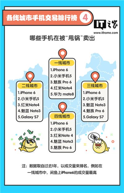 今天,二手交易平臺“閑魚”發(fā)布的“閑魚手機(jī)風(fēng)云榜”顯示,過去一年,iPhone 6成為二手市場上最受歡迎機(jī)型。更有趣的是,從買賣地區(qū)來看,二手iPhone 6也在“逃離”北上廣。
