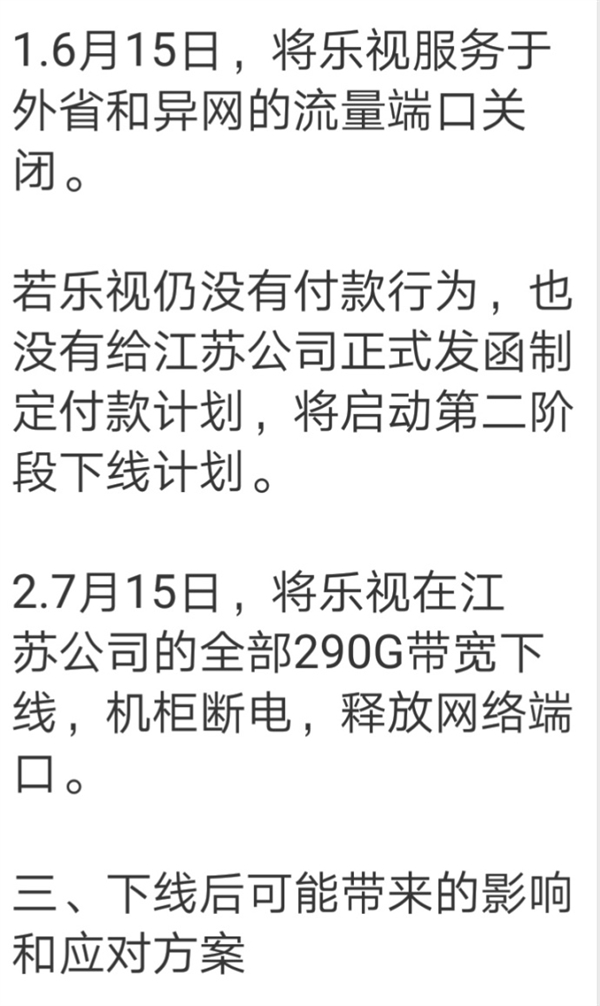 因此,決定將樂視服務(wù)于外省和異網(wǎng)的流量端口關(guān)閉。