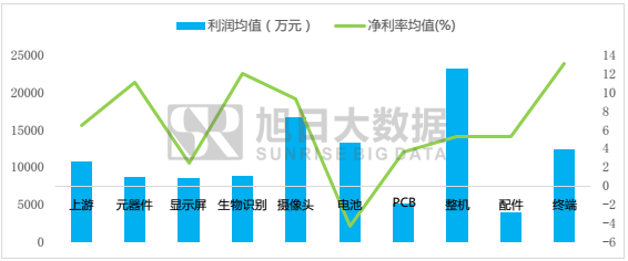 根據(jù)旭日大數(shù)據(jù)中心數(shù)據(jù)顯示,2017年手機攝像頭部分上市企業(yè)的利潤均值為16676.34萬元,占手機整個產(chǎn)業(yè)鏈上市企業(yè)利潤的15%,是除整機外利潤最高的部分。利潤率緊排在終端、電子元器件、生物識別等高端科技之后,但該幾部分絕對利潤均在攝像頭之后,說明其在量上還有一些限制。絕對利潤上攝像頭部分僅排在整機之后,但是整機沒有攝像頭較高的利潤率。因此攝像頭在相對于其他高技術(shù)含量的部分有量上的優(yōu)勢(產(chǎn)能效應(yīng)明顯),相對于整機絕對利潤大的部分攝像頭部分有利潤率上的優(yōu)勢,這正是我們看好攝像頭部分的原因。