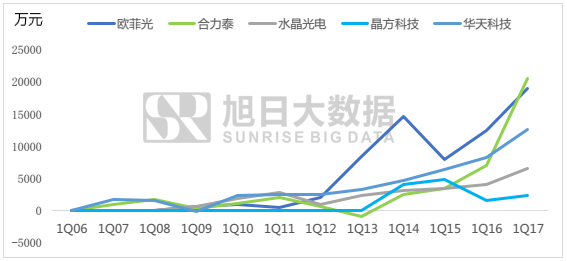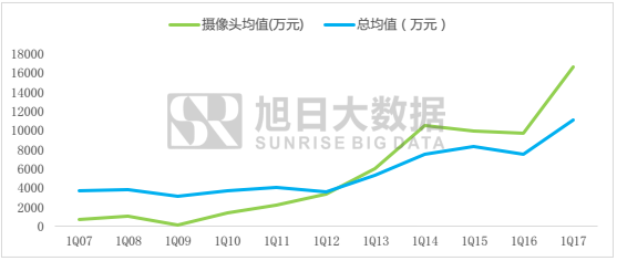 我們在上一期手機產(chǎn)業(yè)鏈利潤分析報告(手機產(chǎn)業(yè)上市企業(yè)利潤詮釋之系列一:機遇與危機并存)中提到,在手機產(chǎn)業(yè)鏈中攝像頭是不錯的投資板塊,根據(jù)旭日大數(shù)據(jù)中心數(shù)據(jù)顯示,目前國內(nèi)攝像頭上市公司一共12家,該部分上市公司利潤均值從07年的723.45萬元增長到2017年的16676.34萬元,年均增長230%;是整個手機產(chǎn)業(yè)鏈之中為數(shù)不多的利潤水平高于整體利潤均值水平的部分;并且在2012年之后攝像頭的利潤增長與整體的上市公司利潤水平呈逐漸拉升的趨勢,這也預(yù)示著未來攝像頭利潤將持續(xù)高于手機產(chǎn)業(yè)鏈上市公司整體水平,并以大于手機產(chǎn)業(yè)上市公司整體利潤水平的增長速度快速增長。