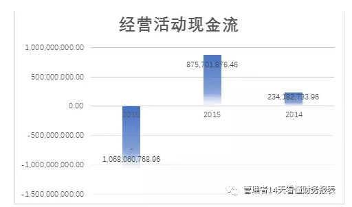 2014年和2015年的經(jīng)營(yíng)活動(dòng)現(xiàn)金流一直是正的。而2016年的經(jīng)營(yíng)活動(dòng)現(xiàn)金流卻是負(fù)數(shù),高達(dá)負(fù)10億元人民幣。這個(gè)負(fù)10億元的意義在于,不談燒錢(qián)這些讓樂(lè)視失血的活動(dòng),本身的造血功能也是出了大問(wèn)題。