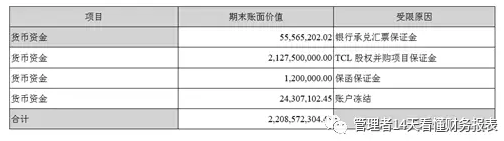 TCL股權(quán)并購(gòu)項(xiàng)目保證金是21億元,占了22億元的絕大部分。