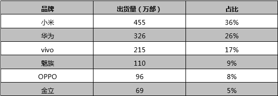 從低、中、高三個排行榜來看,國內(nèi)能上榜的品牌僅有華為、OPPO、vivo、小米、魅族和金立。首先,我們先來看看低端市場智能手機出貨量排行榜,上榜的機型品牌包括小米、華為、vivo、魅族、OPPO、金立。