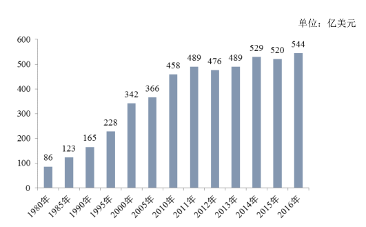 同時總體市場規(guī)?;颈3至顺掷m(xù)增長的態(tài)勢。連接器的全球市場規(guī)模已由1980年的86億美元增長至2014年的529億美元,年均復(fù)合增長率為5.49%。2015年,受匯率、全球經(jīng)濟放緩等影響,全球連接器市場規(guī)模有所下降,為 520億美元。據(jù)市場數(shù)據(jù)預(yù)測,2017 年全球連接器市場將達 630億美元。