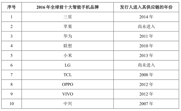 電連技術(shù)進入前十大智能手機廠商供應(yīng)鏈時間