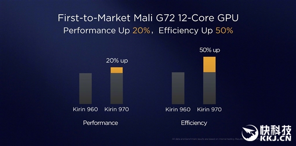 比如在圖像識(shí)別速度上,麒麟970可達(dá)到約2000張/分鐘,而且率先商用的Mali-G72 MP12 GPU,與上一代相比圖形處理性能提升20%、能效提升50%。