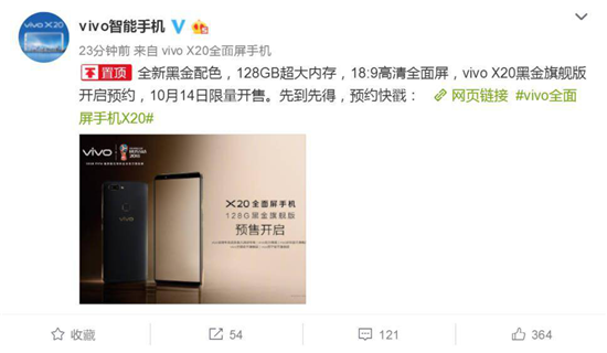 vivo X20全面屏手機(jī)黑金旗艦版開啟預(yù)售