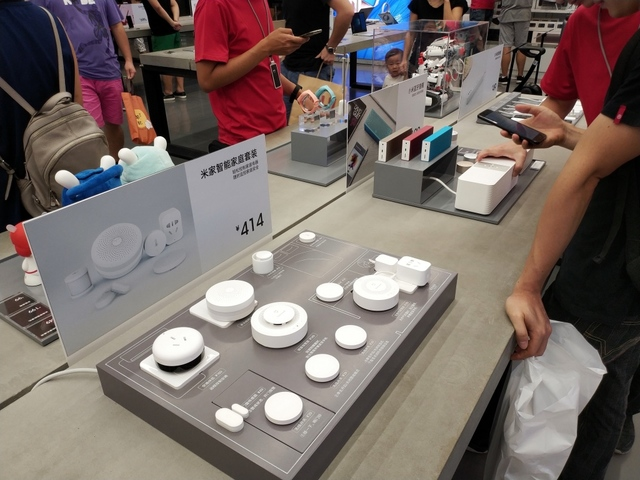 米家智能家庭套裝、網(wǎng)絡音箱、插線板這些小玩意也有不少顧客體驗。