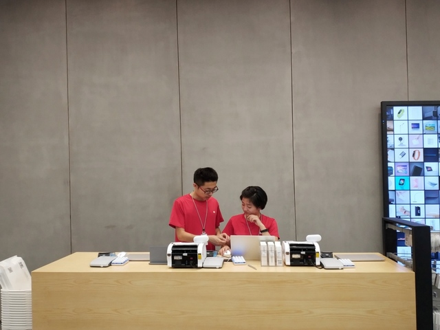 小米之家深圳旗艦店收銀臺,簡潔大方高效。