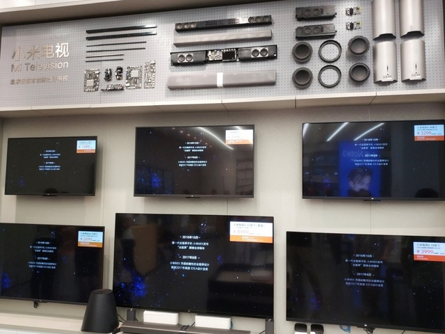 再看一眼熱鬧的生態(tài)鏈產(chǎn)品展區(qū),墻上的五連屏會滾動播放所有的小米產(chǎn)品介紹。