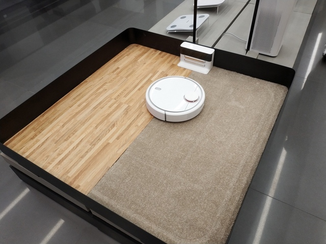 掃地機器人演示區(qū)域,其實我覺得直接撤掉防護墻,讓它在店內(nèi)打掃也挺好。