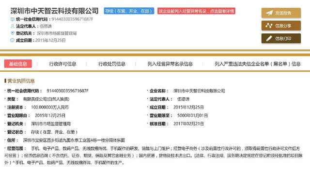有趣的是,該公司還在幾天前被深圳市場監(jiān)管局列入了經(jīng)營異常名錄,原因是登記的住所無法取得聯(lián)系。