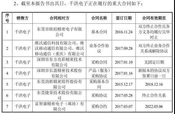 據(jù)了解,千洪電子主要從事消費(fèi)電子功能性器件研發(fā)、生產(chǎn)和銷售,其下游客戶包括手機(jī)、平板電腦、可穿戴設(shè)備等廠商。目前千洪電子的下游客戶主要為 OPPO、vivo兩大手機(jī)品牌商,2016 年度OPPO、vivo 兩大客戶的業(yè)務(wù)收入占其總體收入比例達(dá)到 67.19%,標(biāo)的公司對(duì) OPPO、vivo 兩大客戶的依賴程度較高。此外,長(zhǎng)盈精密、勁勝精密、東方亮彩、富士康、捷榮技術(shù)等都是千洪電子客戶!