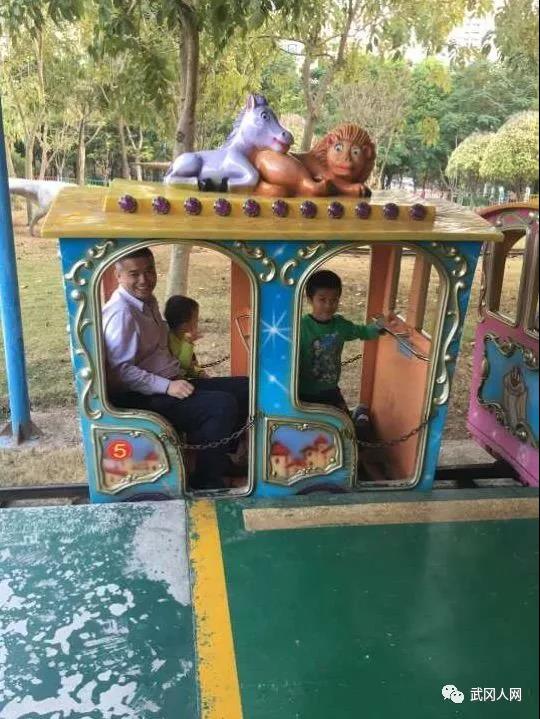 這是我老公—歐建新墜樓一周前我們一家四口在兒童樂園歡樂玩耍的照片。