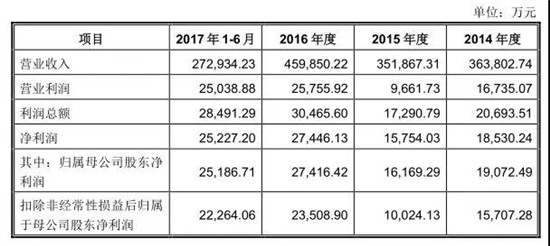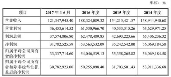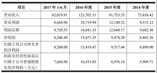 從過(guò)去幾年?duì)I收來(lái)看,從2014年到2017年上半年,其營(yíng)收分別為7.38億、9.17億、12.27億、6.20億,相對(duì)應(yīng)的凈利潤(rùn)分別為0.68億、0.94億、1.54億、0.82億!