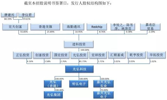 值得一提的是是光弘科技的股東,據(jù)手機(jī)報(bào)在線查詢得知,光弘科技第一大股東為光弘投資,由進(jìn)科投資100%控股,而進(jìn)科控股的股東又包括香港龍旗和海勤通訊,前者為龍旗旗下全資子公司,后者為華勤旗下全資子公司,據(jù)了解,這兩大ODM廠商都是多年前投資了光弘科技!