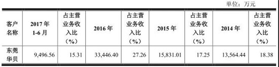 其中華為訂單占比較大,2014年-2017年上半年占比分別為16.50%、20.18%、29.09%和 24.55%!