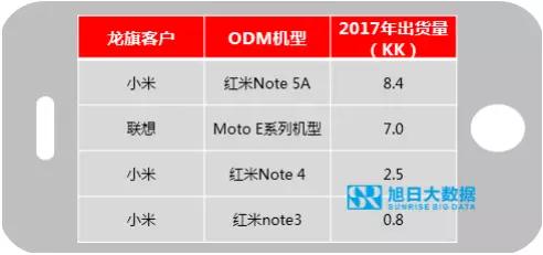 龍旗在打造“爆款”方面亦有亮麗的成績。2017年,由龍旗研發(fā)的紅米note5A和聯(lián)想moto E系列機型合計出貨量分別為840萬部和700萬部。