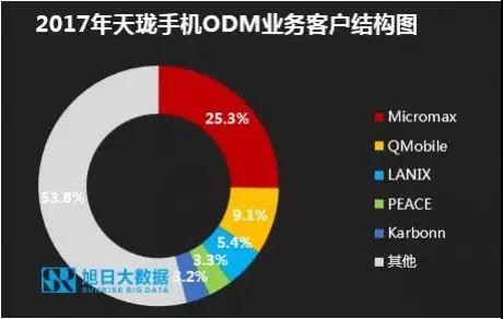 天瓏ODM業(yè)務以海外客戶為主,主要客戶在南亞幾個國家:印度、巴基斯坦、孟加拉,其中Micromax、QMobile為出貨主力,占比超35%。