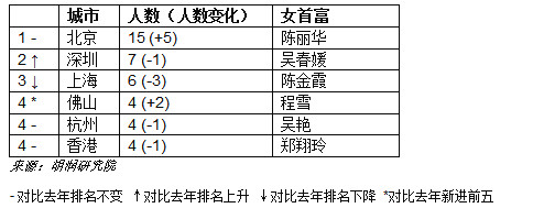 北京仍然是“全球白手起家女富豪之都”,深圳超越上海位居第二