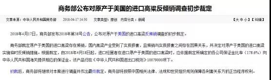 此外,商務(wù)部發(fā)布2018年第38號公告,公布對原產(chǎn)于美國的進口高粱反傾銷調(diào)查的初步裁定。商務(wù)部裁定原產(chǎn)于美國的進口高粱存在傾銷,國內(nèi)高粱產(chǎn)業(yè)受到了實質(zhì)損害,且傾銷與實質(zhì)損害之間存在因果關(guān)系,并決定對原產(chǎn)于美國的進口高粱實施臨時反傾銷措施。根據(jù)裁定,自2018年4月18日起,進口經(jīng)營者在進口原產(chǎn)于美國的進口高粱時,應(yīng)依據(jù)裁定所確定的各公司保證金比率(178.6%)向中華人民共和國海關(guān)提供相應(yīng)的保證金。該產(chǎn)品歸在《中華人民共和國進出口稅則》10079000項下。