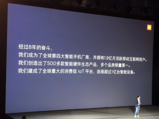 小米創(chuàng)始人雷軍首先登臺(tái)演講,他透露自己是1987年進(jìn)入武漢大學(xué),18歲的時(shí)候就有一個(gè)夢(mèng)想,要做一個(gè)偉大的人,要做一個(gè)與眾不同的人。而自2010年4月6日創(chuàng)辦小米公司以來(lái),經(jīng)過(guò)8年的奮斗小米已成為全球第四大智能手機(jī)廠商,擁有1.9億月活躍互聯(lián)網(wǎng)用戶,創(chuàng)造出500多款智能硬件生態(tài)產(chǎn)品,建成了全球最大的消費(fèi)級(jí)IoT平臺(tái),連接超過(guò)1億臺(tái)智能設(shè)備。