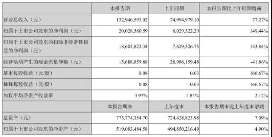 而到了2018年第一季度,勁拓股份再度維持了業(yè)績(jī)的高增長(zhǎng),據(jù)其第一季度財(cái)報(bào)顯示,其實(shí)現(xiàn)營(yíng)收達(dá)到了1.32億元,同比增長(zhǎng)77.27%,凈利潤(rùn)則達(dá)到了2002.85萬元,同比增長(zhǎng)149.44%!